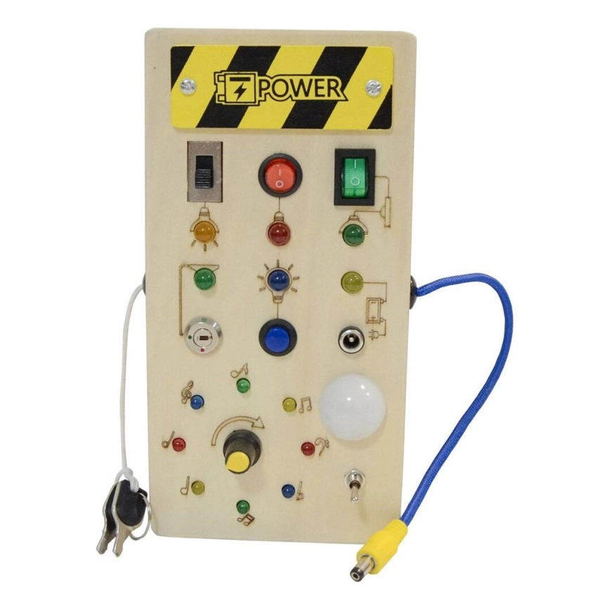 • Placa de madeira com atividades que oferece inúmeras possibilidades para explorar a relação de causa e efeito.