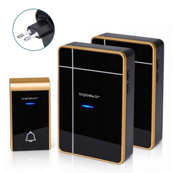 Aigostar - CONJUNTO 2x Campainhas Sem Fios Plug-in 230V/12V IP44 preto/cobre