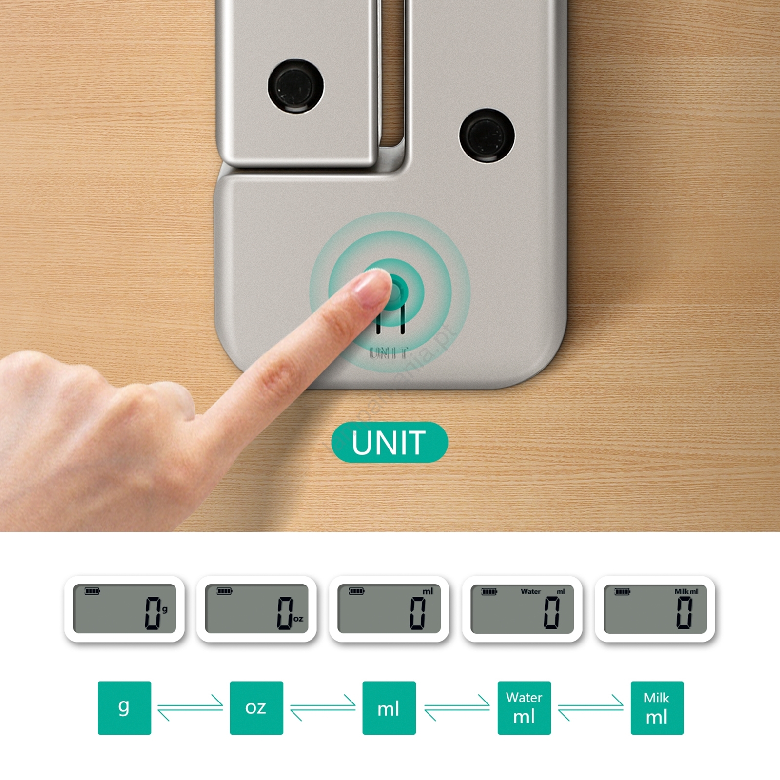 • O design da balança permite pesar alimentos diretamente no prato ou recipiente, exatamente como você precisa.