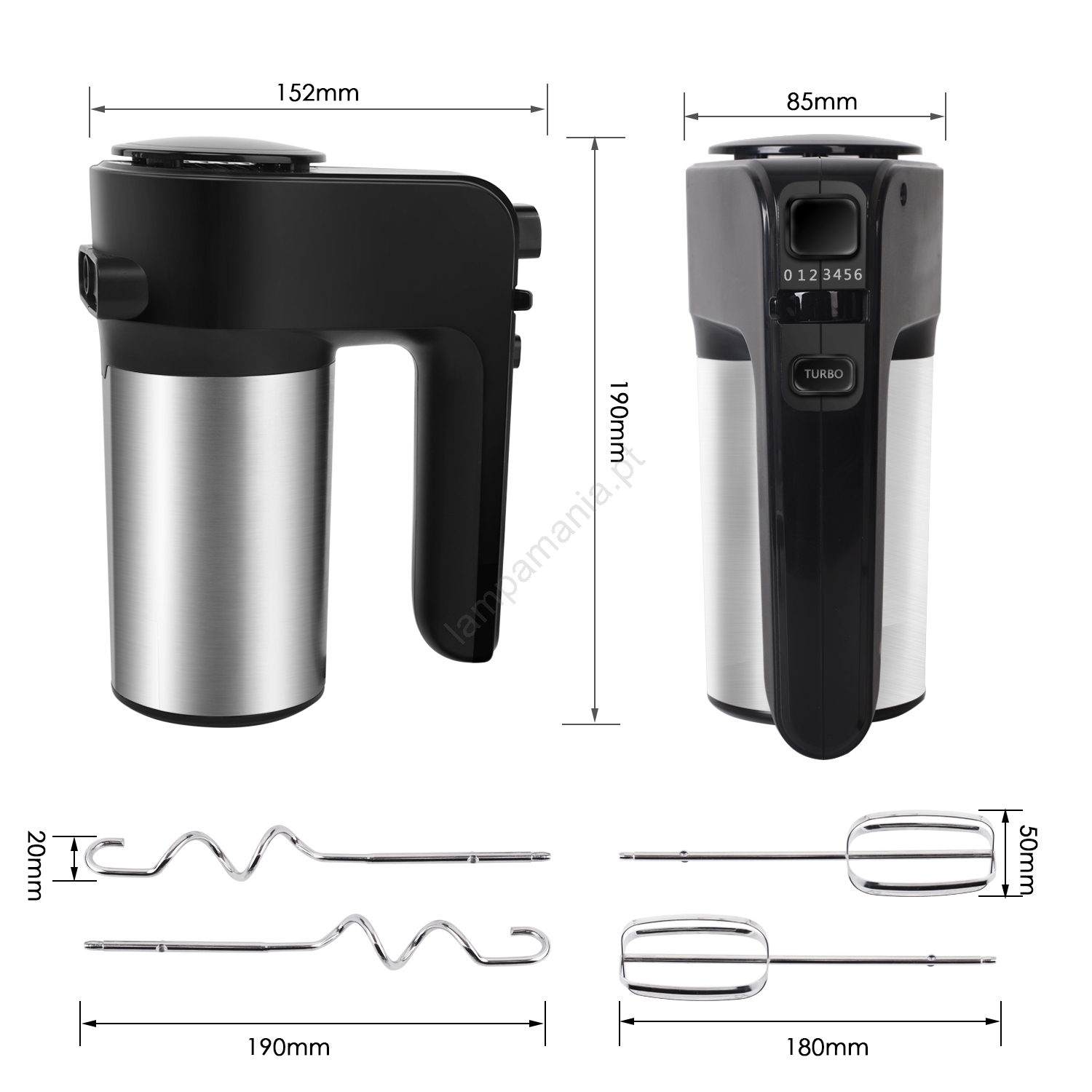 Aigostar - Batedeira portátil 300W/230V preto/cromado mate
