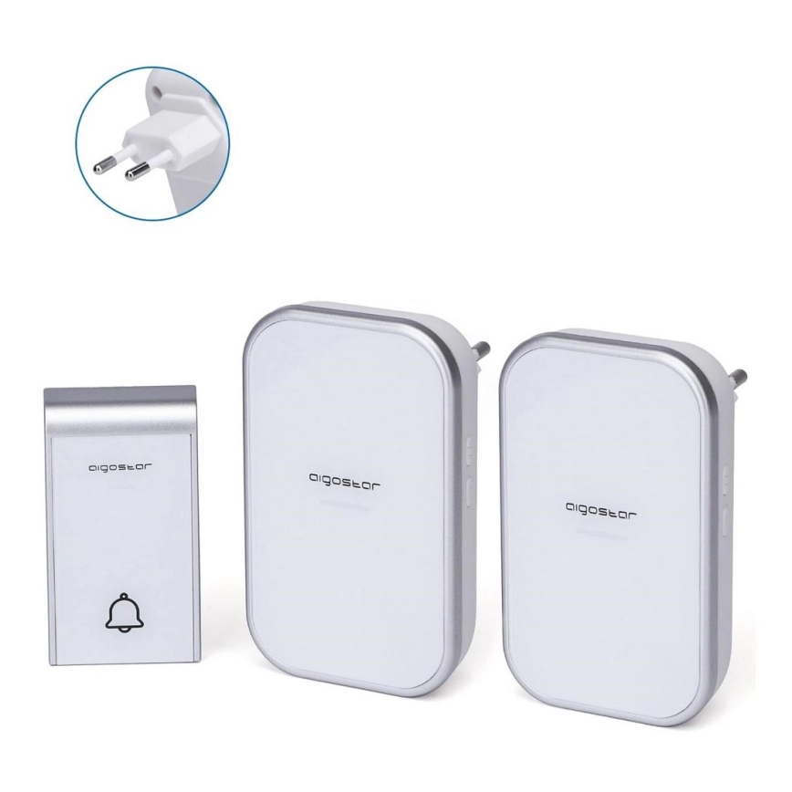 Aigostar - CONJUNTO 2x Campainhas Sem Fios Plug-in 230V/12V IP44 branco
