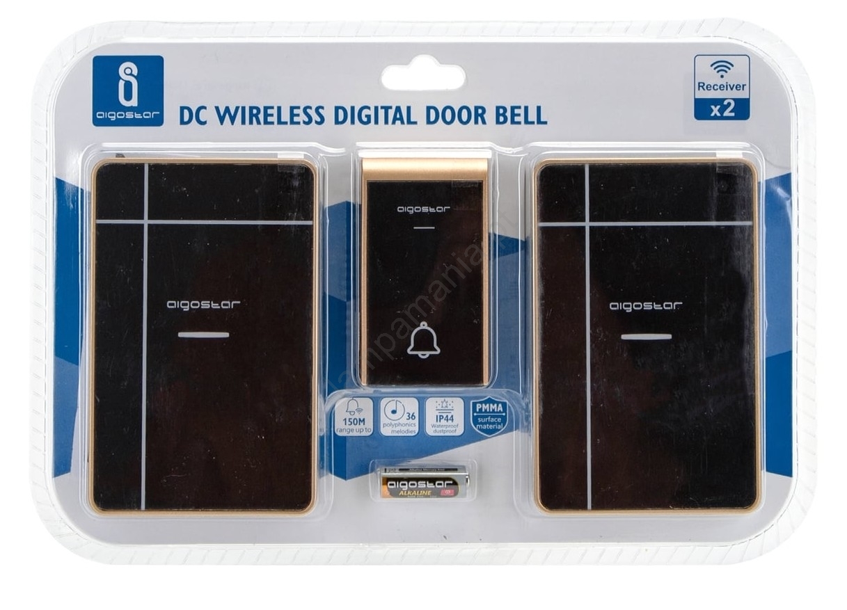 Aigostar - CONJUNTO 2x Campainhas sem fios 3xAA/12V IP44 preto