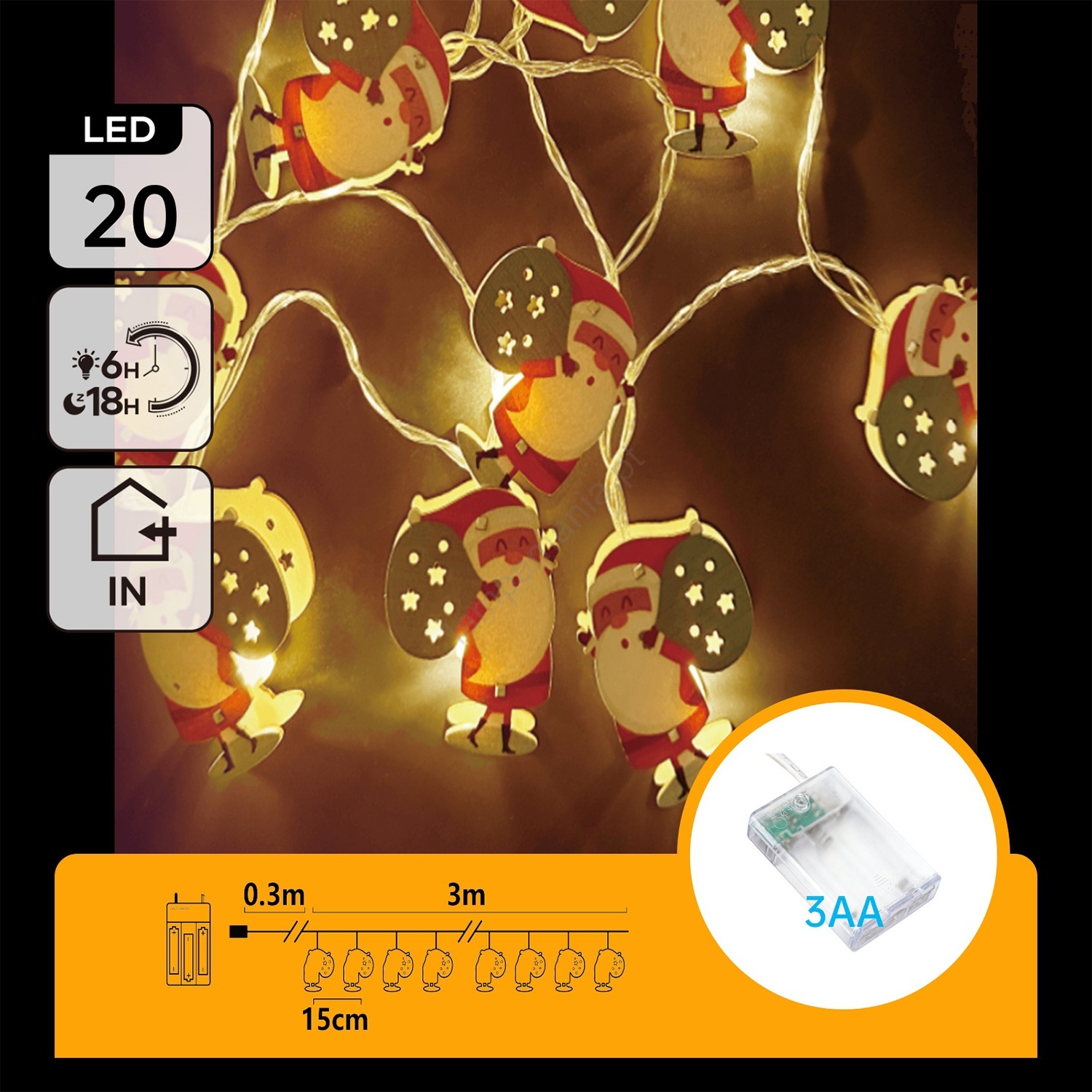 Aigostar - Cordão de luzes LED 20xLED/3xAA 3m branco quente Pai Natal