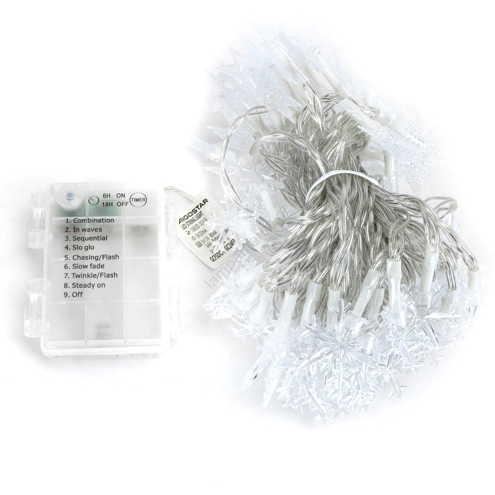 Aigostar - Cordão LED para exterior 100xLED/8 funções 3xAA 10m IP44 branco quente estrelas