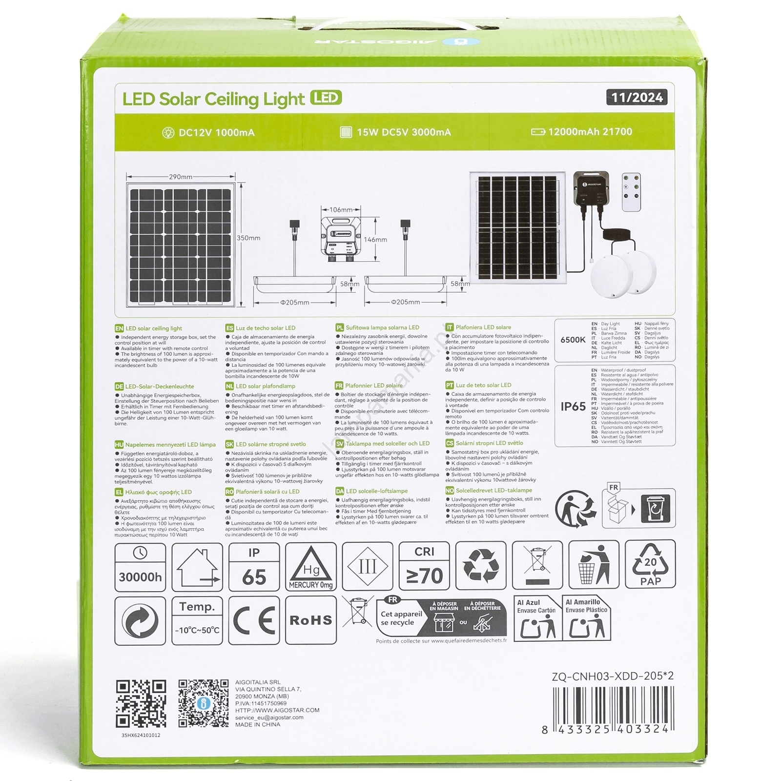 Aigostar - Iluminação solar LED 2xLED/70W/12V 12000 mAh 6500K diâmetro 20,5 cm + comando