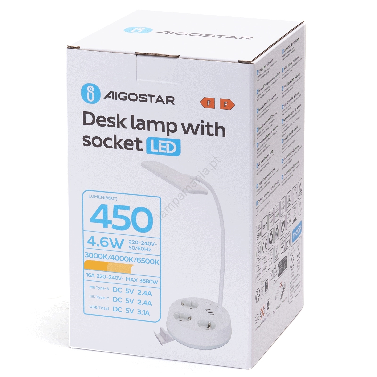 Aigostar - Luminária de mesa LED dimerizável com tomadas e porta USB LED/4,6W/230V 3000/4000/6500K branca