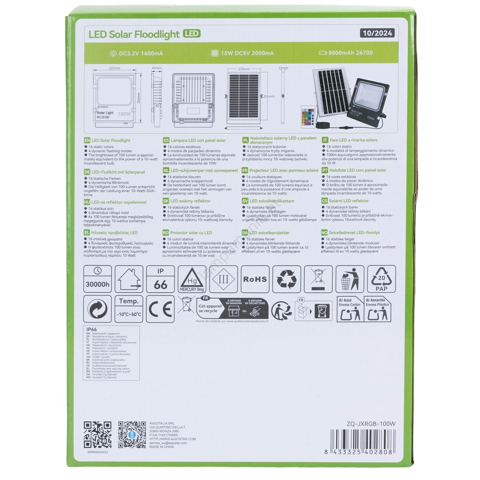 Aigostar - Refletor solar LED RGB regulável LED/100W/3,2V IP66 + controlo remoto