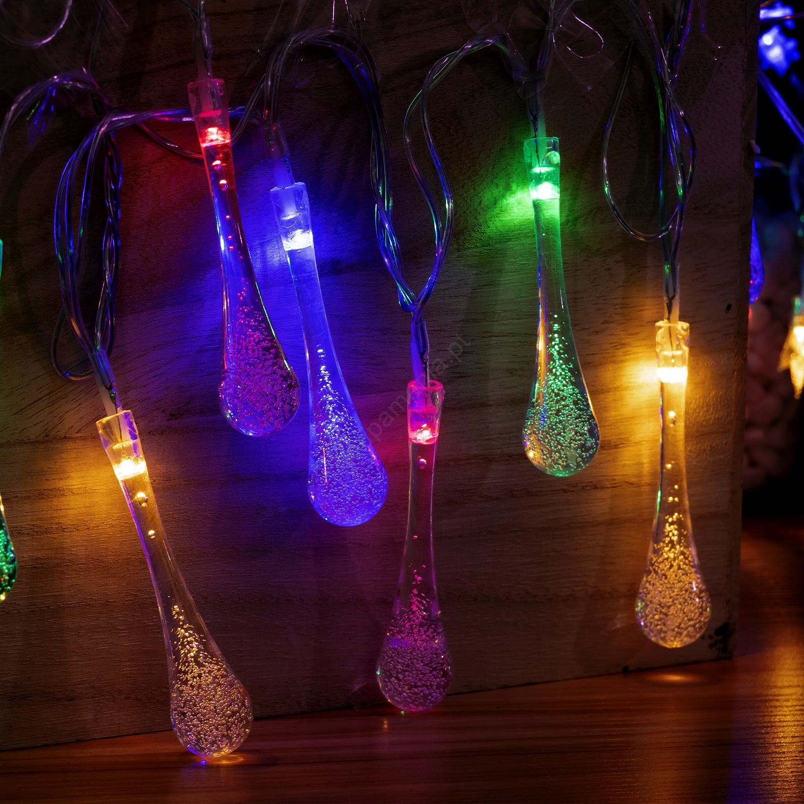 Aigostar - Cordão de luzes LED para exterior 25 LEDs/8 funções 3x pilhas AA 2,5m IP44 gotas multicoloridas