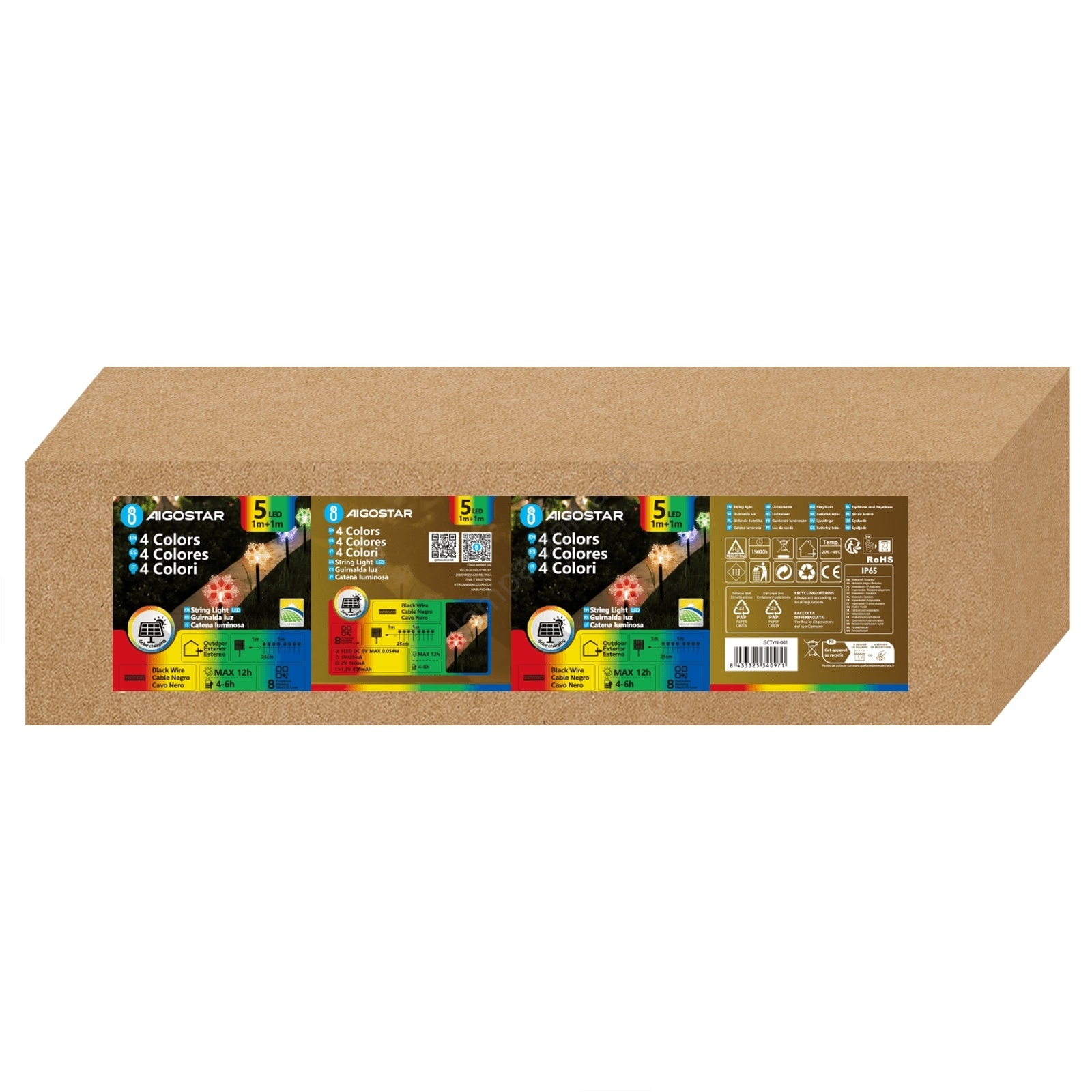 • Aigostar - Luminária Solar LED RGBY 5xLED/1,2V/8 funções 1m IP65 800mAh flocos