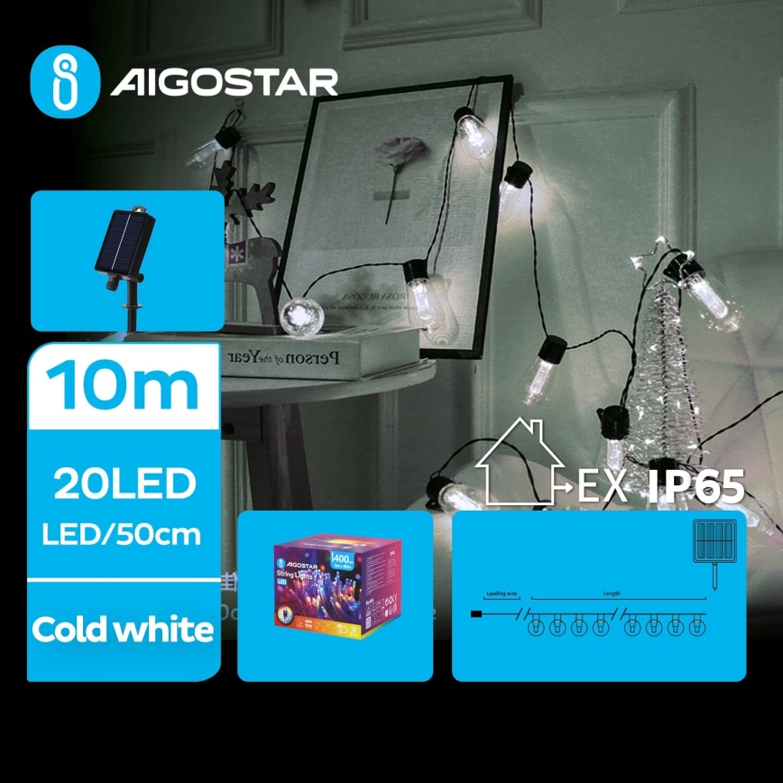 Aigostar - Guirlanda solar LED 20 LEDs/8 funções 11,5 m 1200 mAh IP65 branco frio