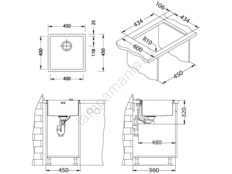 • Conteúdo da embalagem: pia em aço inoxidável, fixadores e vedantes, válvula com cesta 3 1/2, sifão com derivação para máquina de lavar louça.