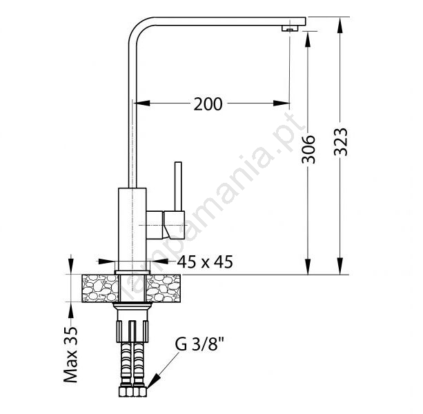 • Torneira de cozinha monocomando com alta pressão e bica giratória.