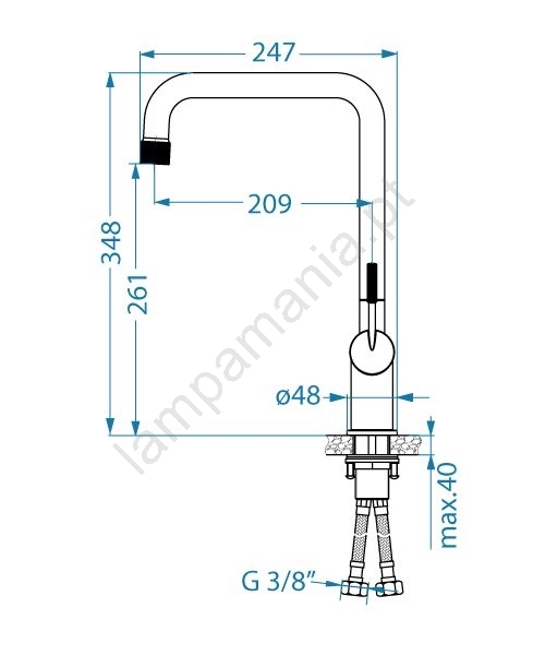 • Torneira de cozinha monocomando com alta pressão e bica giratória.
