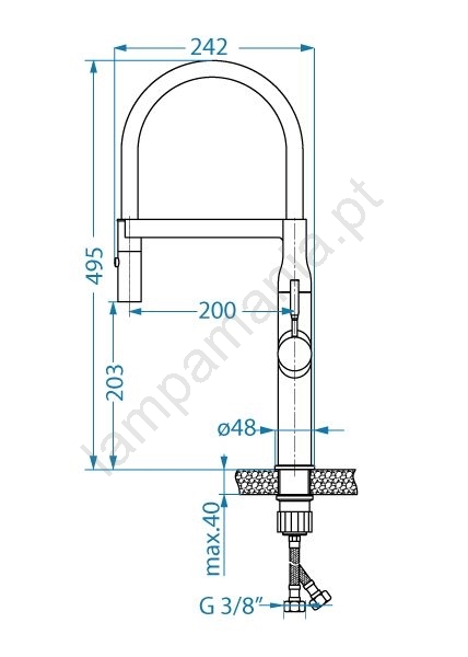 • Torneira de cozinha monocomando com alta pressão e braço giratório.