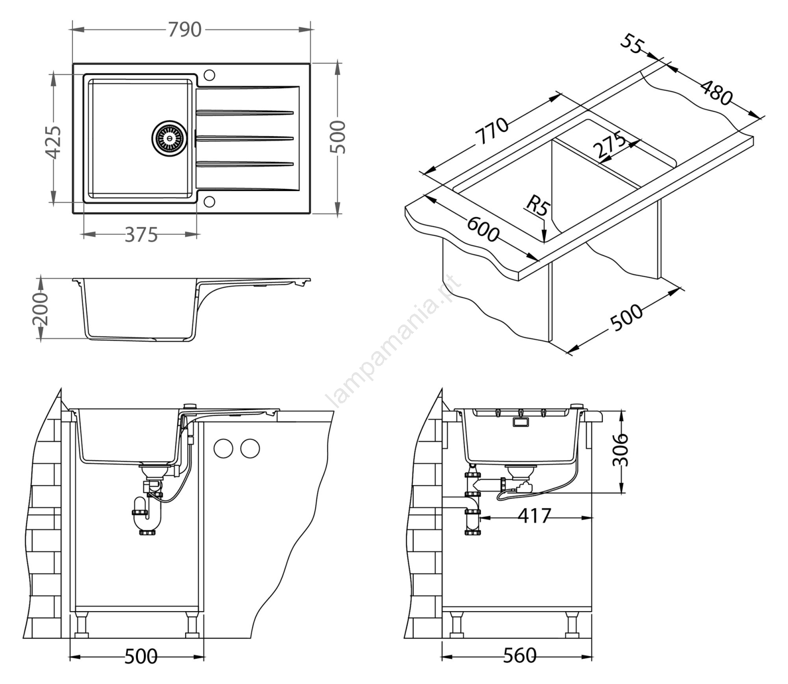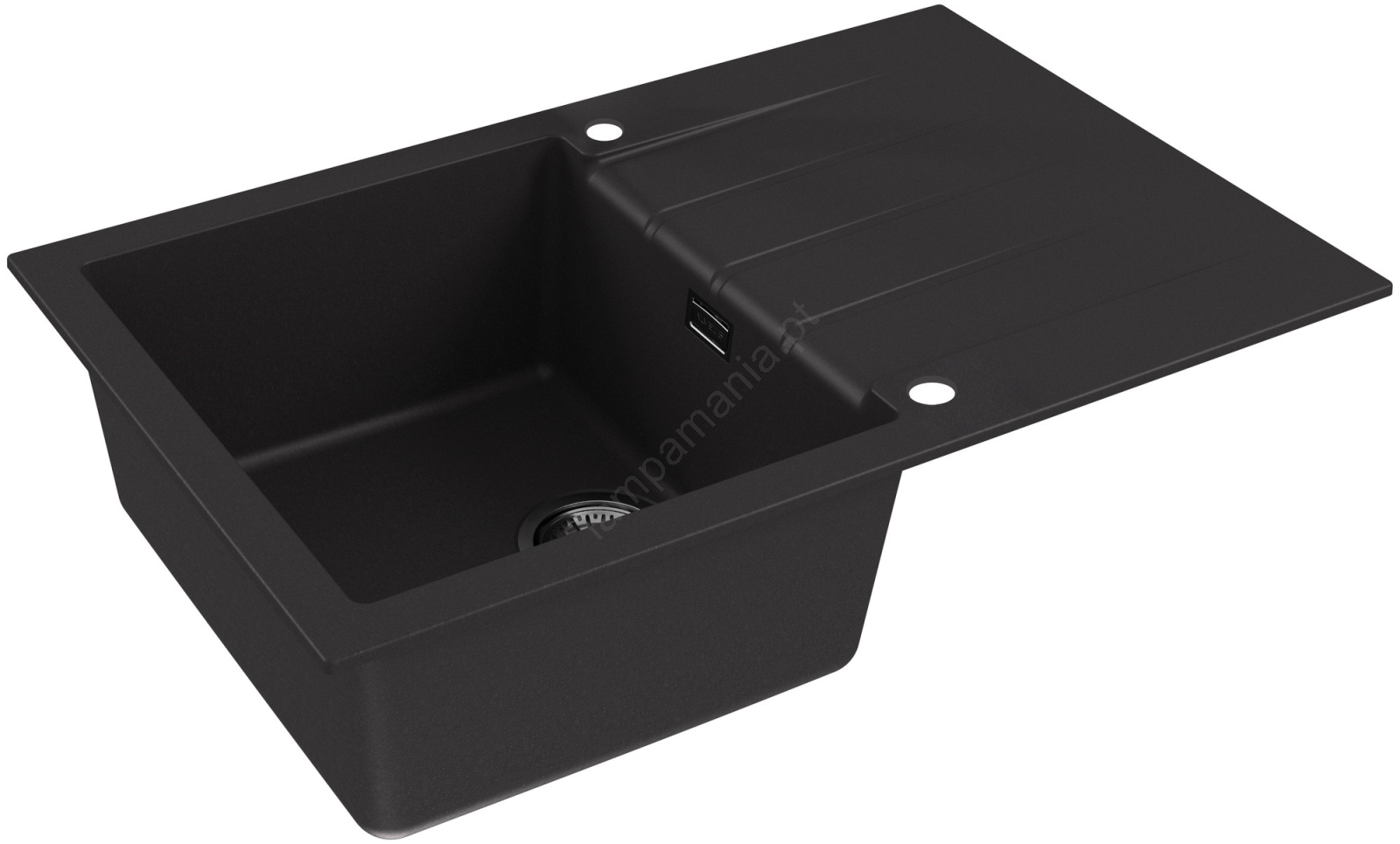 • ALVEUS SETA23231 - Cuba de cozinha CADIT 79x50 cm + misturador para cuba MINTAS 34 cm com bica flexível, granito/preto mate