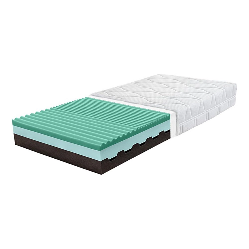 • Espuma híbrida para conforto, espuma PUR para firmeza – A espuma PUR firme confere estabilidade e resistência ao colchão contra deformações, enquanto a espuma híbrida proporciona conforto e adaptação ao corpo.