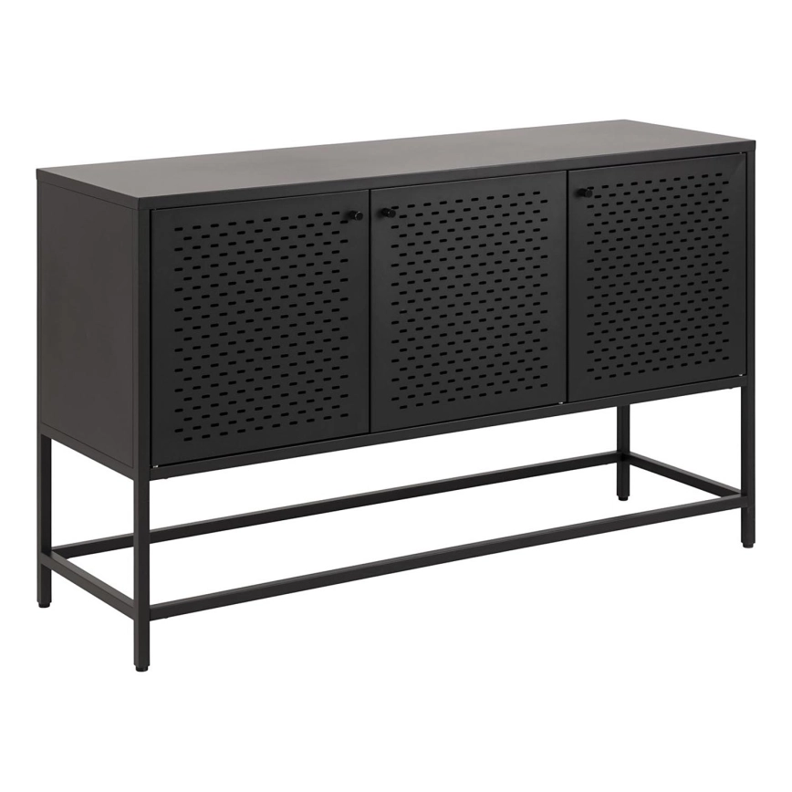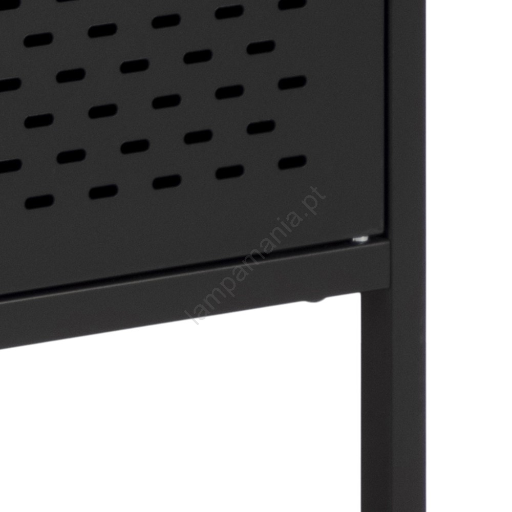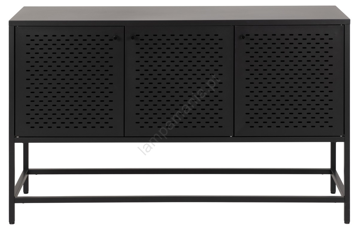 • Tampo superior, estrutura, 3 portas, 2 prateleiras e base em aço preto fosco com pintura eletrostática texturizada.