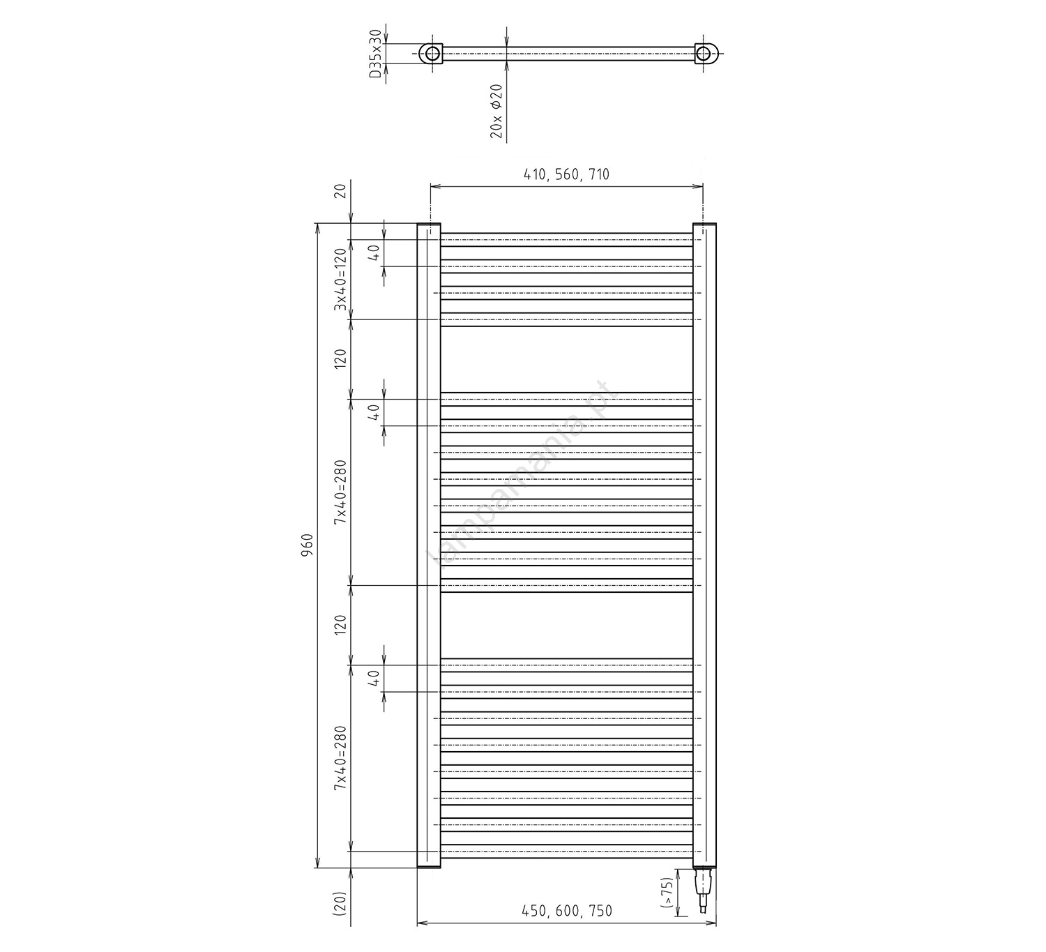 Aqualine - Radiador elétrico para casa de banho DIRECT-E 300W/230V 96 cm branco direito