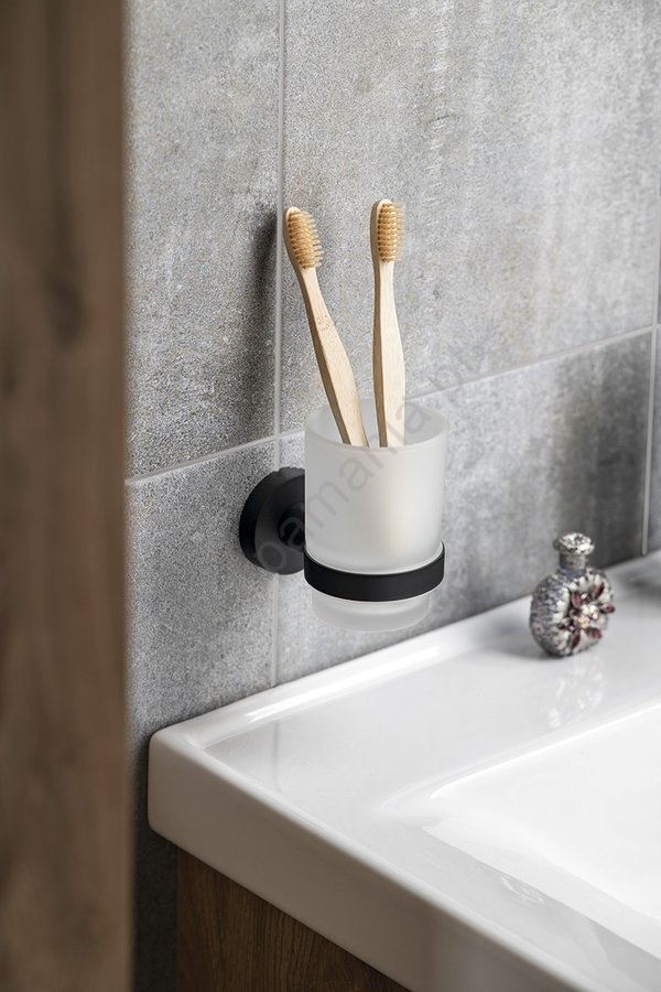 Aqualine - Suporte de parede para escova de dentes SAMBA leitoso copo/mate preto