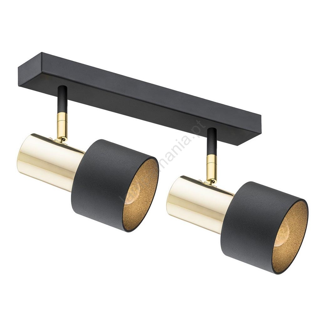Argon 0925 - Foco DORIA 2xE27/15W/230V preto/latão caracteriza-se por um design agradável e funcional.  Uma lâmpada com casquilho E27 é adequada para a iluminação Aqui, pode comprar outras lâmpadas a preços vantajosos. Terá um complemento interessante para a sua casa.