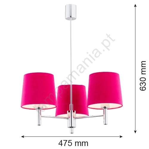 Argon 1382 - Candelabro suspenso BOLZANO 3xE27/15W/230V cromado rosa/brilhante caracteriza-se por um design agradável e funcional.  Uma lâmpada com casquilho E27 é adequada para a iluminação Aqui, pode comprar outras lâmpadas a preços vantajosos. Terá um complemento interessante para a sua casa.
