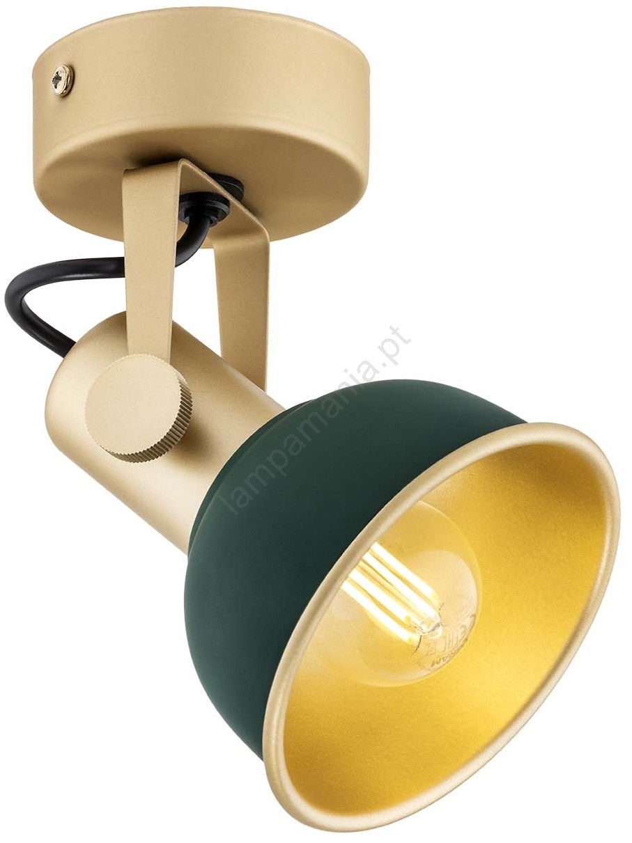 Argon 8247 - Foco LENORA 1xE14/7W/230V dourada/verde caracteriza-se por um design agradável e funcional.  Uma lâmpada com casquilho E14 é adequada para a iluminação Aqui, pode comprar outras lâmpadas a preços vantajosos. Terá um complemento interessante para a sua casa.