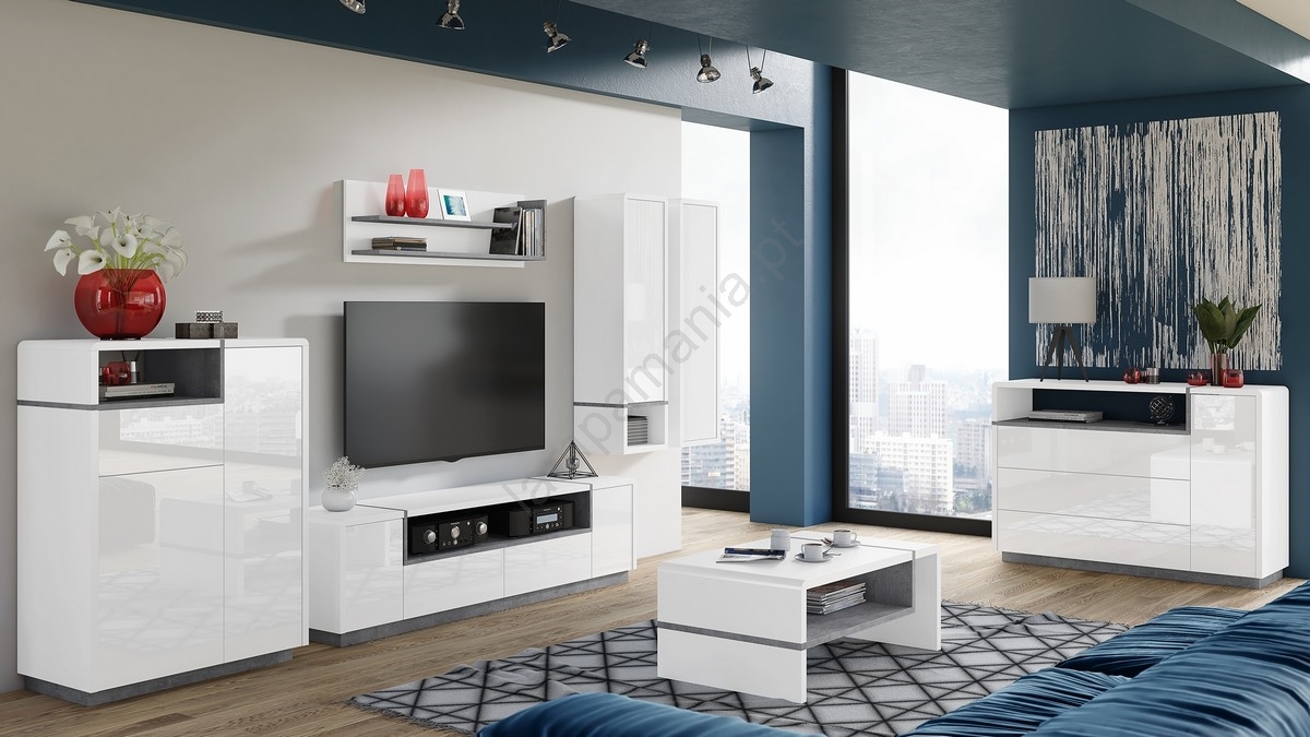 Armário com prateleira aberta FRED branco/cinza