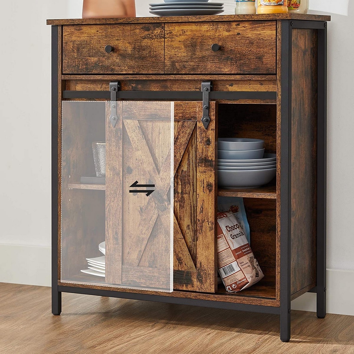 Cômoda com portas deslizantes e gavetas FIRA castanha/preta