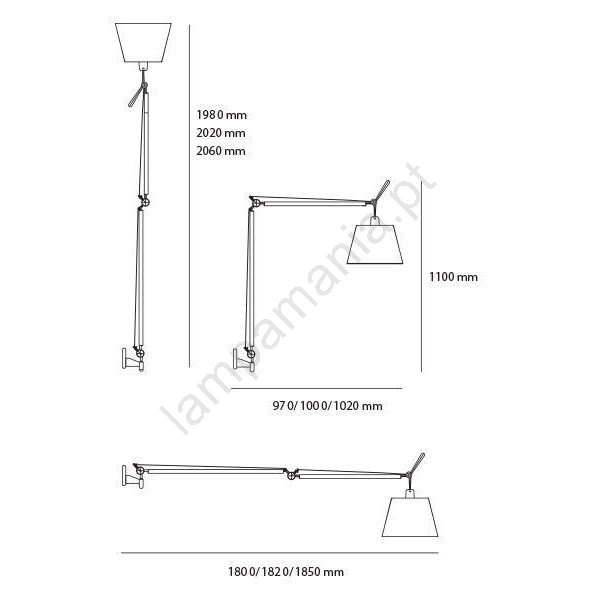 Artemide AR 0564010A+AR 0780030A+AR 0779010A KOMPLET - Candeeiro de chão TOLOMEO MEGA 1xE27/150W/230V