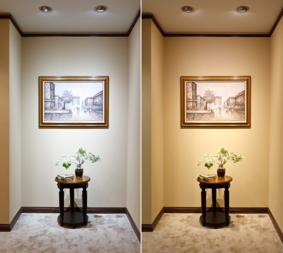 Para a maioria das pessoas, o mais agradável e mais habitual é a cor branca quente. Esta cor tem uma tonalidade ligeiramente amarela. As lâmpadas padrão, lâmpadas de halogéneo, tubos fluorescentes mais caros, bem como as lâmpadas LED emitem este tipo de luz. No entanto, nas lâmpadas LED tem havido uma tendência para utilizar uma luz ligeiramente mais branca do que absolutamente amarela, como é o caso das lâmpadas normais. Desta forma, as lâmpadas LED aproximam-se da luz do dia e também a cor demasiado amarela não é boa para os olhos.