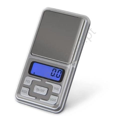 • A balança pode pesar em unidades de g, tl, oz, ct, gn, tem um visor LCD retroiluminado, a sua superfície de pesagem é de aço inoxidável, e tem um desenho rectangular com um painel de controlo com botões.