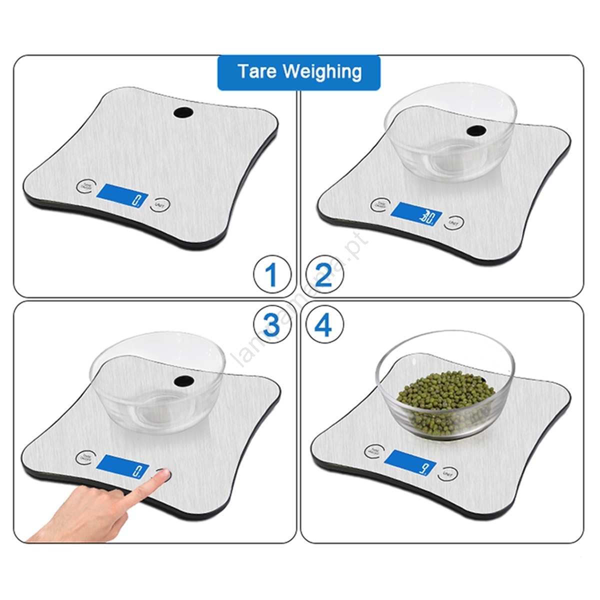 • A balança é fabricada com material de alta qualidade, que facilita a remoção de resíduos de alimentos.