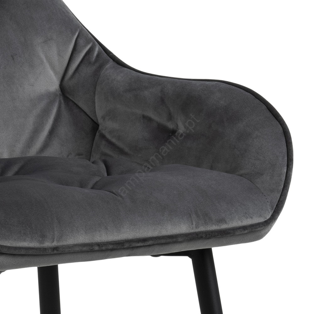• Tecido Vic cinza escuro, base de aço com acabamento em pó preto fosco.