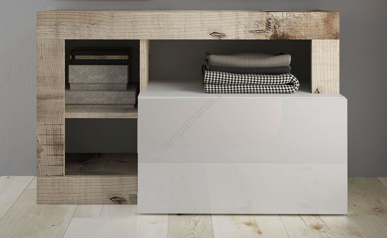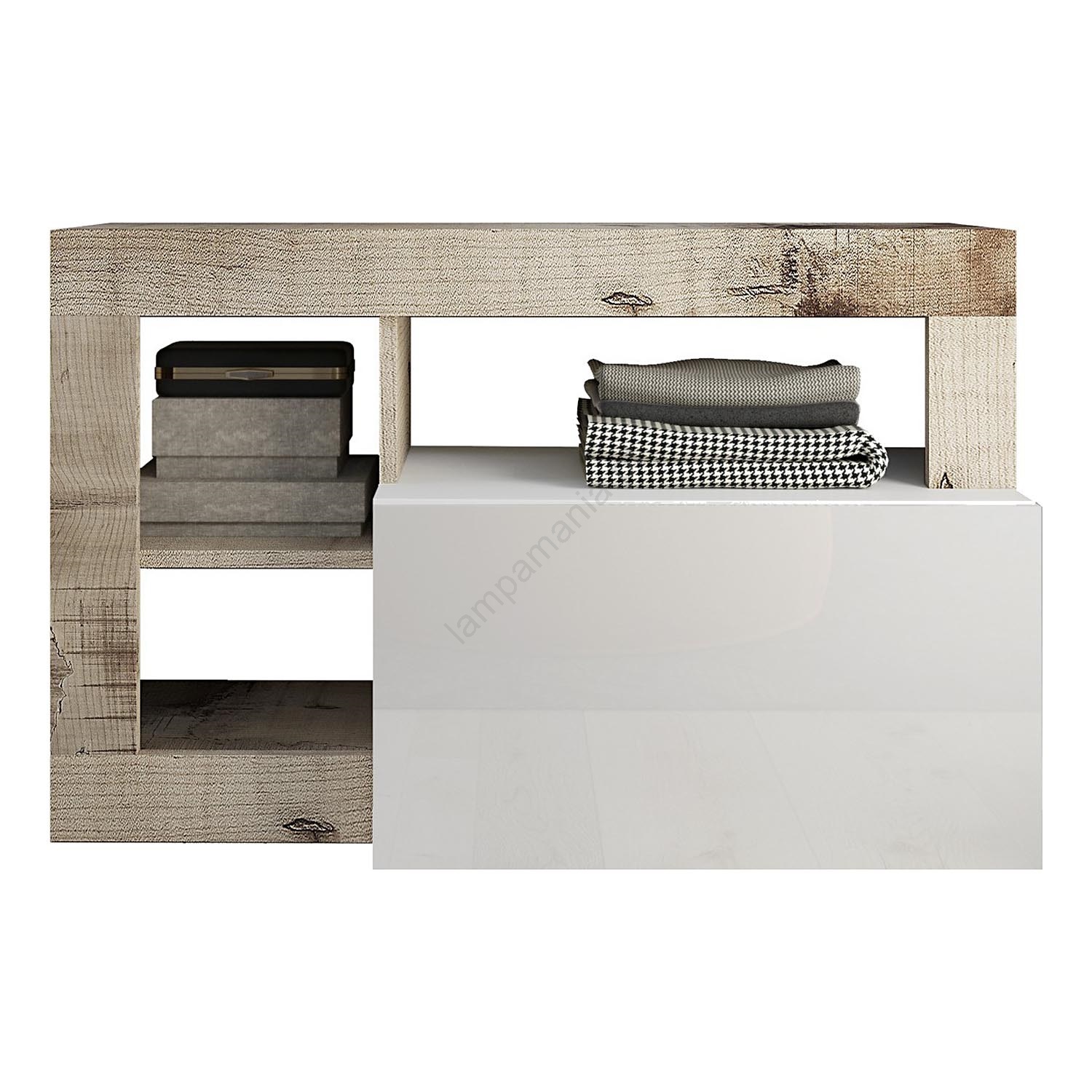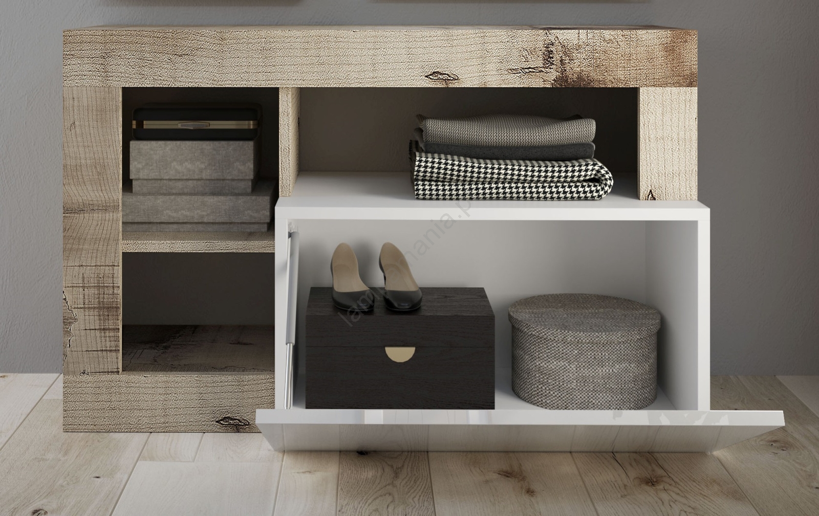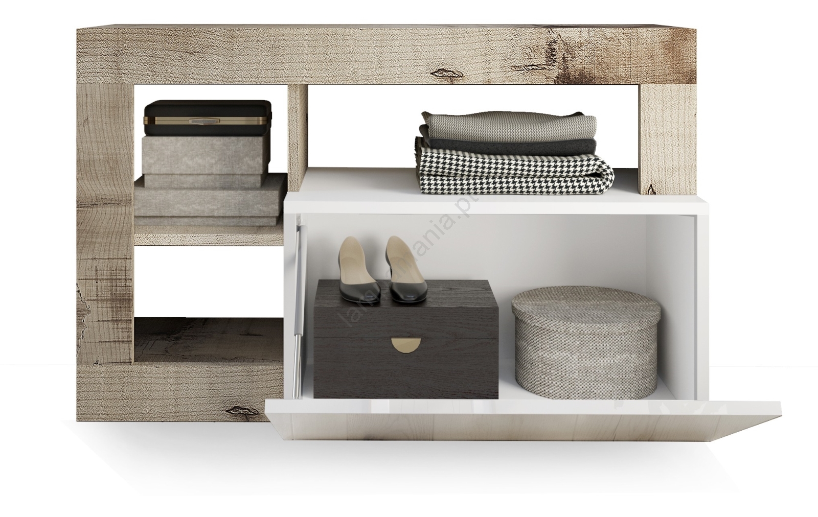 • Dispõe de 3 prateleiras abertas e uma prateleira interna com abertura basculante para guardar bolsas, sapatos e artigos sazonais.