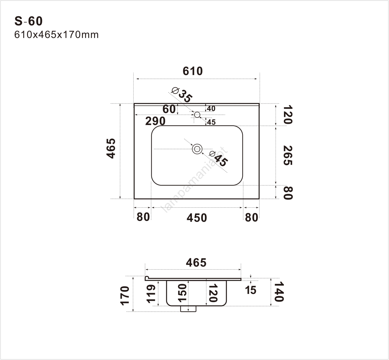 • BATH DELUXE 06-060-27-02-00 - Lavatório embutido HYGE 61x46 cm cerâmica/preto