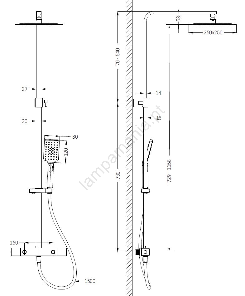 • O conjunto é composto por uma torneira termostática em latão maciço.