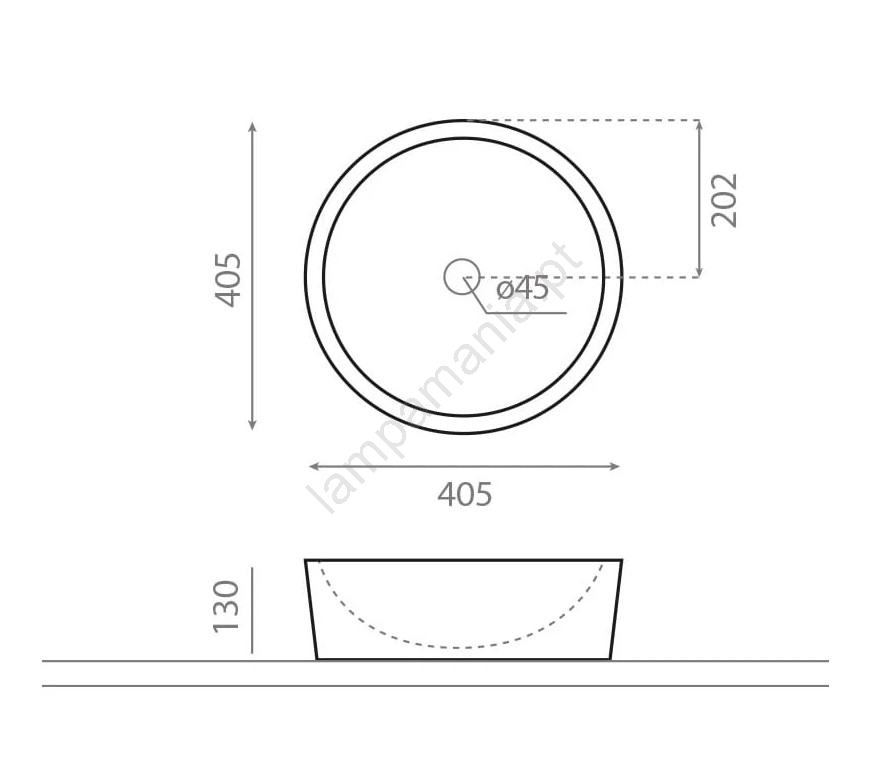 • Lavatório moderno e elegante, sem orifício de transbordamento.