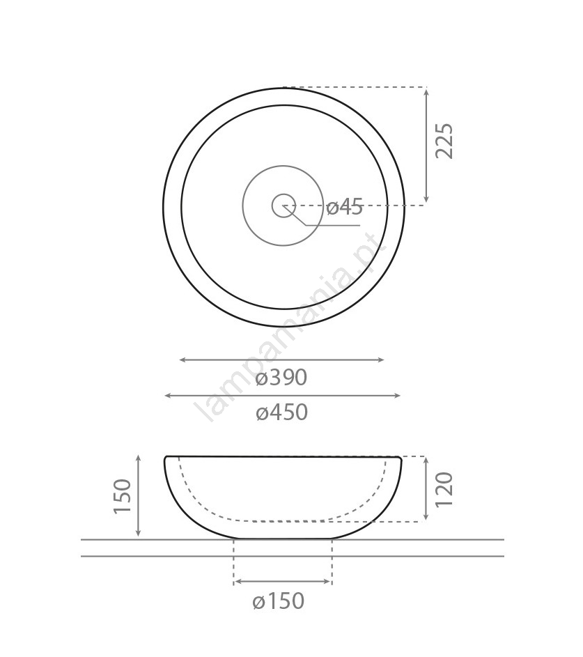 • Bathco 00317 - Lavatório de apoio PUKET Ø 45 cm pedra/cinzento