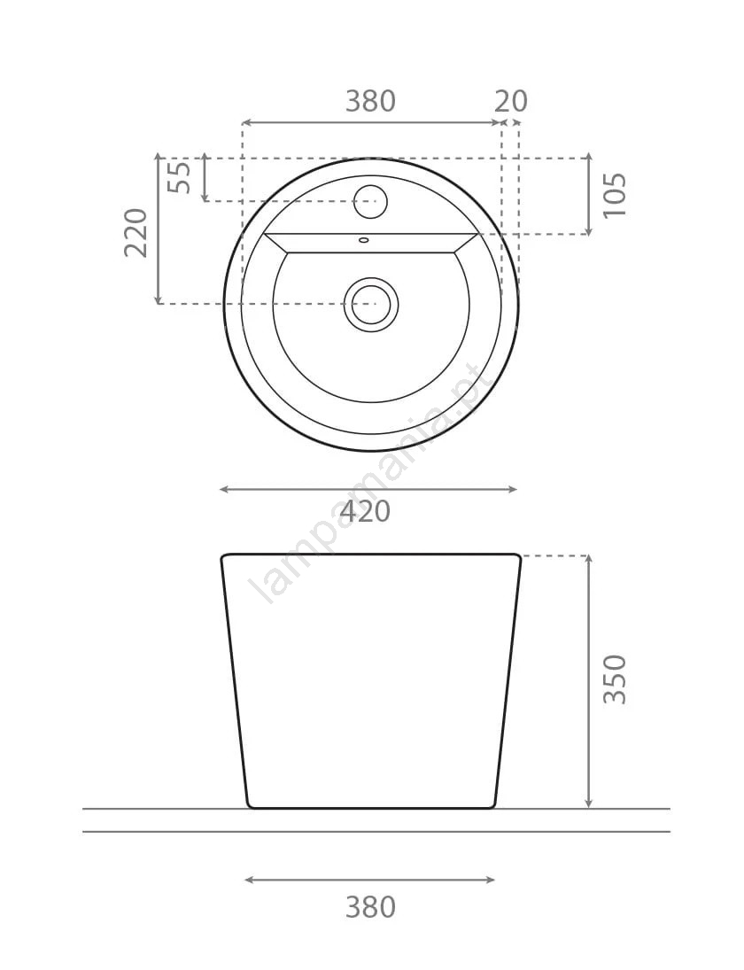 • A embalagem inclui o lavatório sem sifão nem torneira.