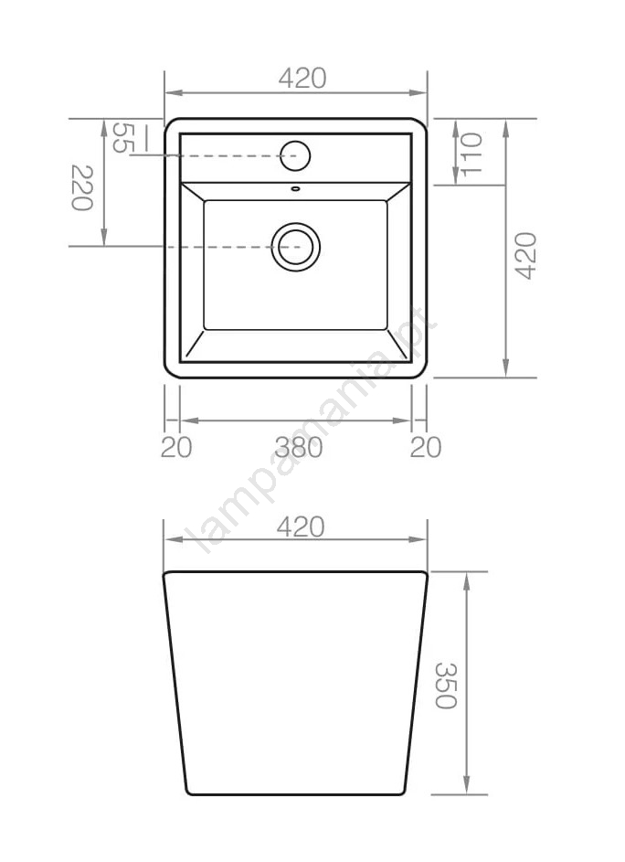 • A embalagem inclui o lavatório sem sifão e sem torneira.