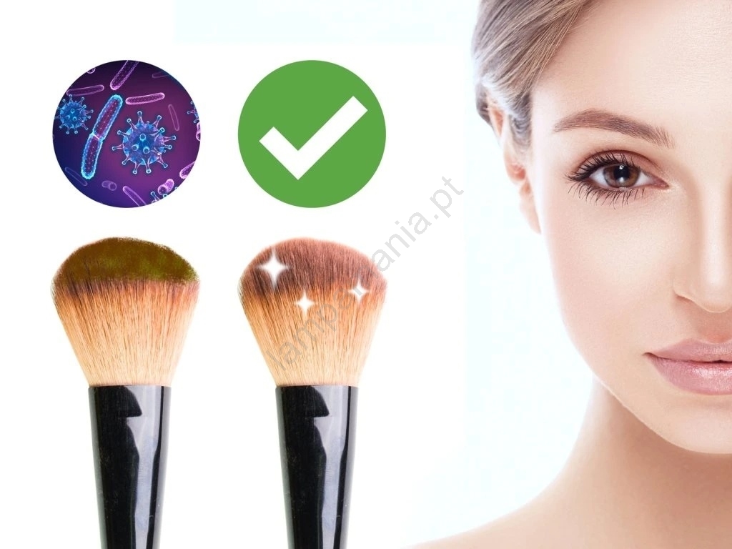• A remoção dos resíduos de maquilhagem contribui para uma aparência mais cuidada dos pincéis e para uma pele mais saudável, livre de impurezas.