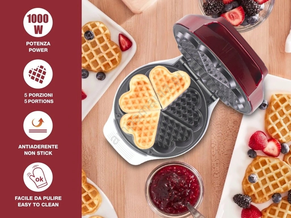 • Ideal para preparar até 5 waffles em forma de coração de uma só vez.