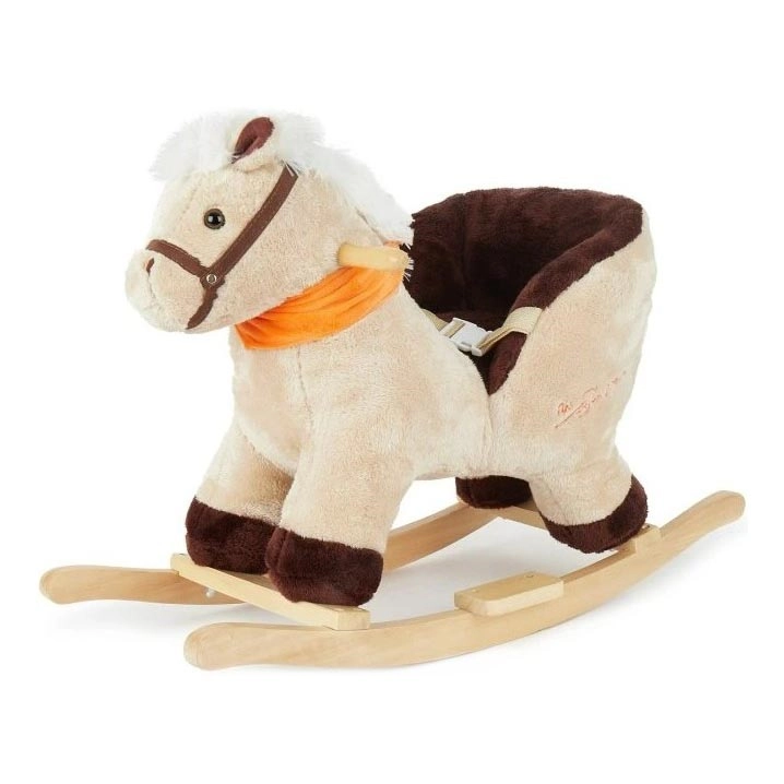 • Com pelúcia macia e estrutura de madeira resistente, estimula as habilidades motoras e oferece muita diversão segura ao balançar.