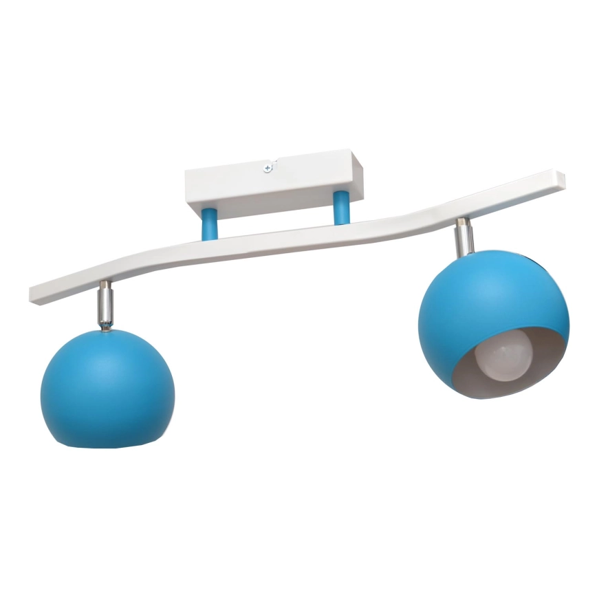 Foco MORRIS 2xE27/15W/230V azul caracteriza-se por um design agradável e funcional.  Uma lâmpada com casquilho E27 é adequada para a iluminação Aqui, pode comprar outras lâmpadas a preços vantajosos. Terá um complemento interessante para a sua casa.
