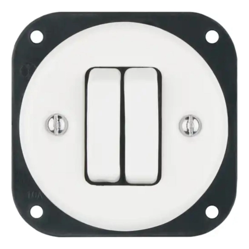 Bohemia-Design - Interruptor retro duplo em porcelana sem moldura n.º 6+6 branco