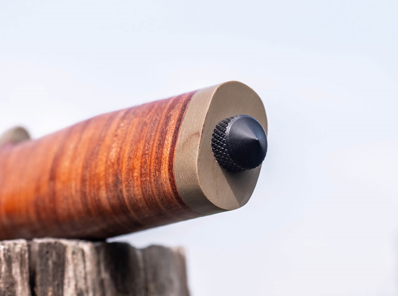 • A lâmina em aço inoxidável 440A e o cabo em material leve G10 revestido em couro.