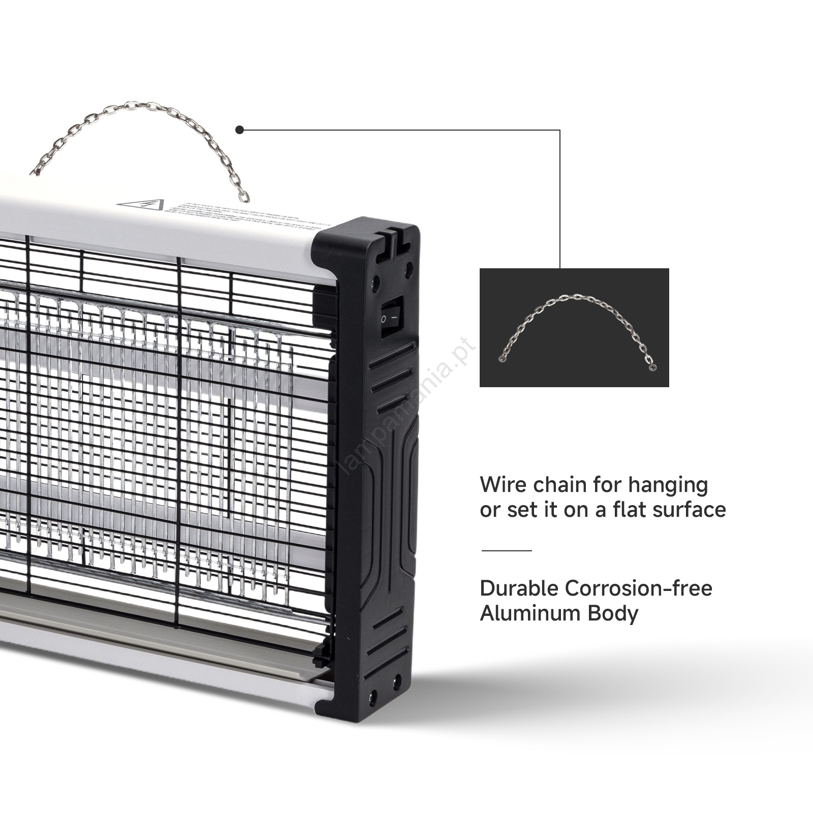 • Armadilha elétrica para insetos com tecnologia UV.