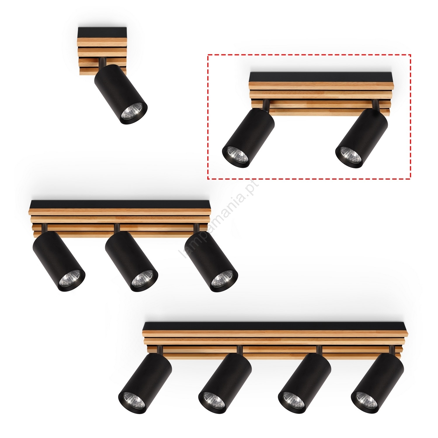 Brilagi - Candeeiro de focos SELE WOOD 2xGU10/30W/230V preto/madeira caracteriza-se por um design agradável e funcional.  Uma lâmpada com casquilho GU10 é adequada para a iluminação Aqui, pode comprar outras lâmpadas a preços vantajosos. Terá um complemento interessante para a sua casa.