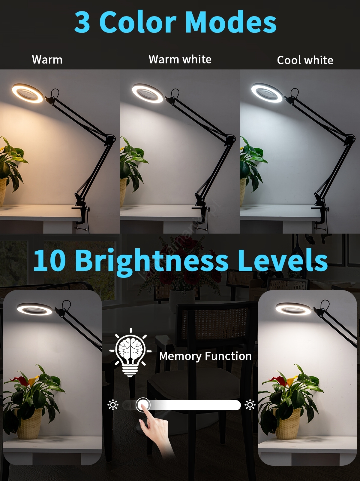 • Brilagi - Candeeiro de mesa LED com regulação e lupa LENS LED/12W/5V 3000/4200/6000K branco