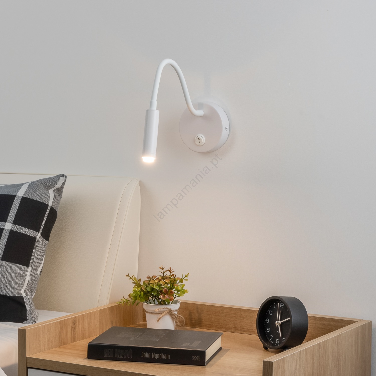 • Lâmpada de parede flexível com um prático interruptor na parte frontal.